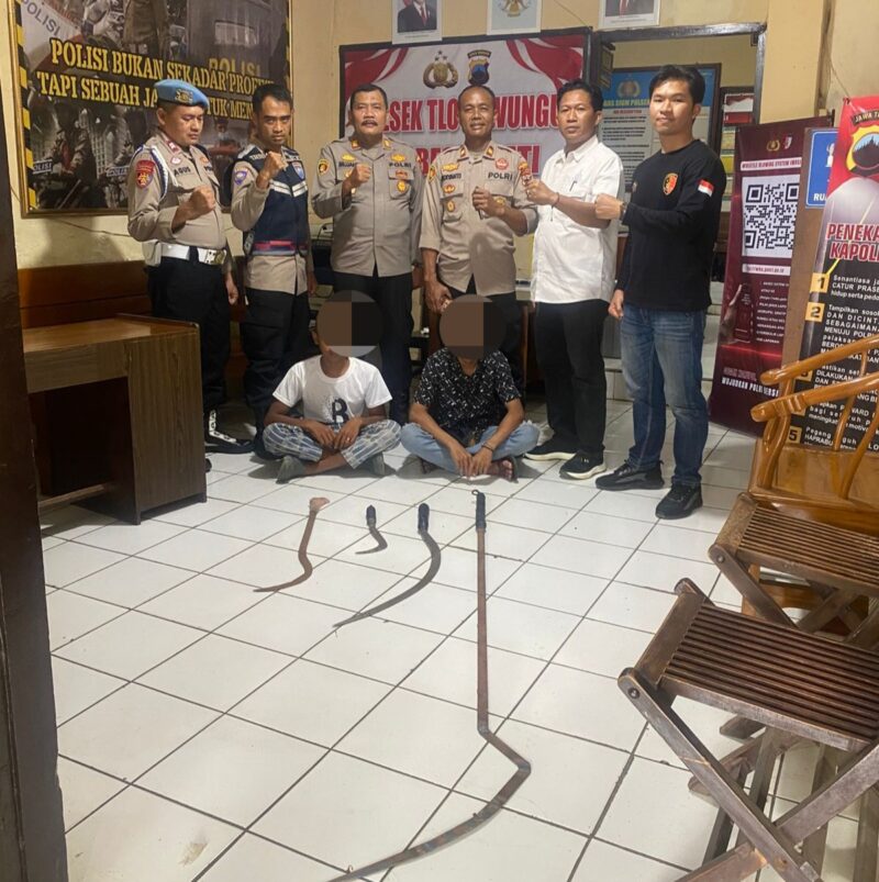 PATI|Jejakkasusindonesianews.com – Rencana tawuran besar antar gangster di wilayah Tlogowungu berhasil dipatahkan. Unit Reskrim Polsek Tlogowungu mengamankan dua remaja, ABS (17) dan IMA (15), beserta empat bilah senjata tajam yang disembunyikan di sebuah rumah di Desa Tlogorejo, Senin (8/12/2025) sekitar pukul 10.00 WIB.