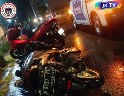 Benturan keras tersebut membuat pengendara motor mengalami luka serius di bagian kepala dan harus dilarikan ke rumah sakit untuk mendapatkan perawatan intensif.