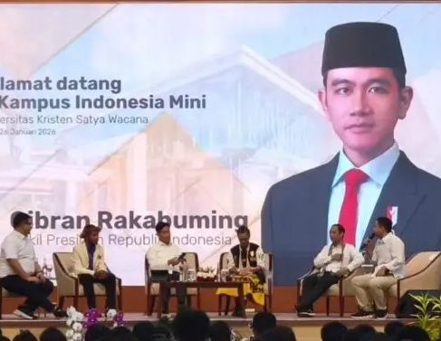 Penegasan tersebut disampaikan Gibran saat talkshow nasional bertema “Arah Baru Pembangunan Nasional” bersama civitas akademika Universitas Kristen Satya Wacana (UKSW) Salatiga, Senin (26/1/2026). Kegiatan yang digelar di Balairung UKSW itu dihadiri ratusan mahasiswa lintas fakultas dan berlangsung dinamis serta interaktif.