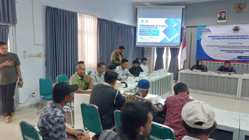 BOYOLALI | JEJAKKASUSINDONESIANEWS.COM – Upaya memperkuat peran masyarakat dalam menjaga stabilitas sosial terus digencarkan di Kabupaten Boyolali. Salah satunya melalui kegiatan peningkatan kapasitas masyarakat sipil dalam penyelesaian konflik sosial yang digelar di Kantor Kesbangpol, Kecamatan Mojosongo, Sabtu (25/4/2026).