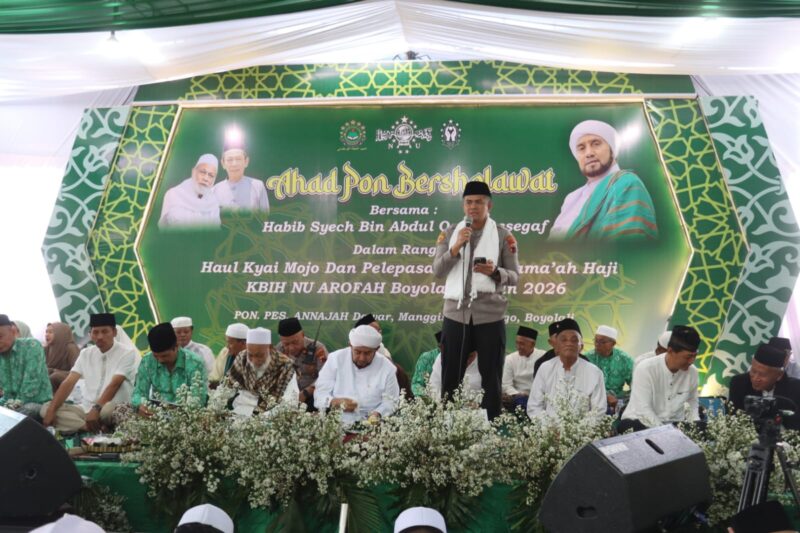 BOYOLALI | JEJAKKASUSINDONESIANEWS.COM – Kehadiran Kapolres Boyolali AKBP Indra Maulana Saputra di tengah ribuan jamaah menjadi perhatian dalam gelaran Pengajian Ahad Pon dan Sholawat bersama Habib Syech bin Abdul Qodir Assegaf di Pondok Pesantren An-Najah, Dukuh Dawar, Desa Manggis, Kecamatan Mojosongo, Minggu (26/4/2026).