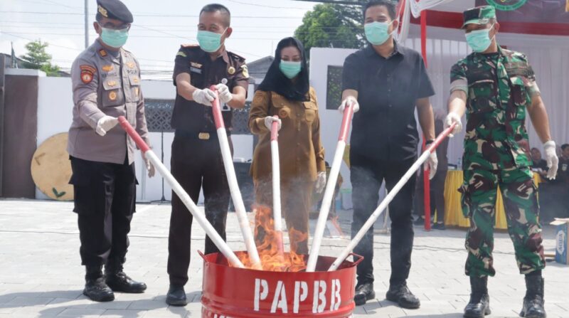 Pemusnahan tersebut dilakukan setelah seluruh barang bukti dinyatakan dirampas untuk dimusnahkan berdasarkan putusan Pengadilan Negeri Brebes.