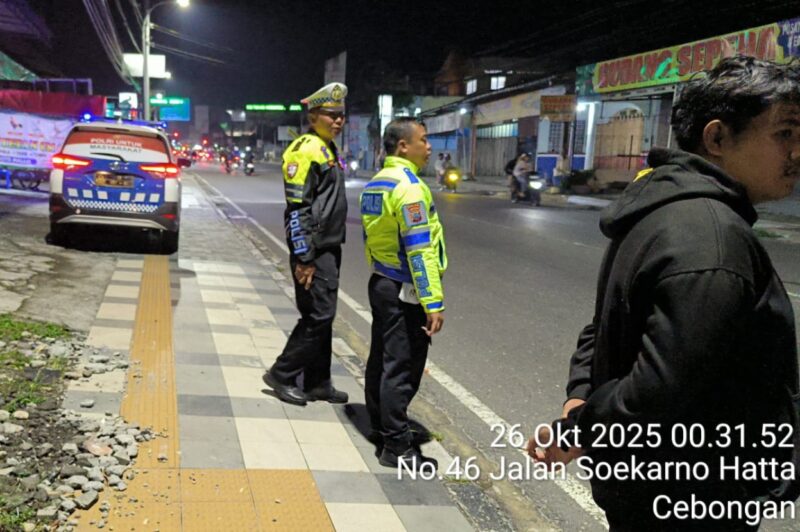 Petugas piket fungsi Polres Salatiga yang dipimpin KBO Satlantas IPTU Sugiyanto, S.H., langsung menuju Jalan Sukarno Hatta, Kelurahan Cebongan, Kecamatan Argomulyo, Sabtu dini hari (26/10/2025).
