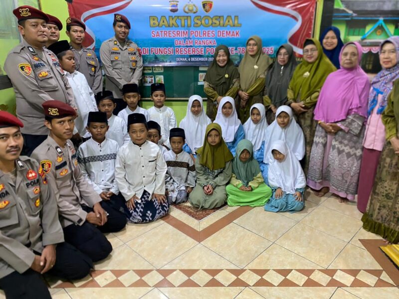 Demak|Jejakkasusindonesianews.com – Memperingati Hari Ulang Tahun (HUT) ke-78 Reserse Polri, Satuan Reserse Kriminal (Satreskrim) Polres Demak melaksanakan kegiatan bhakti sosial dan doa bersama di Panti Asuhan Darul Hadlonah, Kelurahan Bintoro, Kecamatan Demak, Sabtu (6/12/2025).