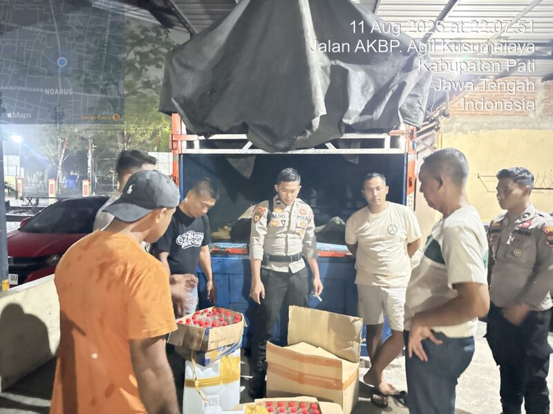 Kasat Samapta AKP Ali Mahmudi menyampaikan, sebanyak 102 botol arak ukuran 600 ml dan 4 jerigen berisi masing-masing 30 liter minuman keras berhasil disita. Langkah ini didasari oleh UU No. 2 Tahun 2002 tentang Polri, Perkap No. 1 Tahun 2009 tentang Penggunaan Kekuatan Kepolisian, dan Perda Kabupaten Pati No. 1 Tahun 2023 tentang larangan peredaran miras.