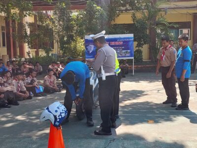 Demak / Jejakkasusindonesianews.com– Upaya menekan angka kecelakaan lalu lintas di kalangan pelajar terus digencarkan Satuan Lalu Lintas (Satlantas) Polres Demak. Kali ini, melalui program Polantas Menyapa, personel Satlantas hadir langsung di SMA Negeri 2 Demak, Jumat (19/9/2025), untuk memberikan edukasi tertib berlalu lintas sekaligus pelatihan safety riding.