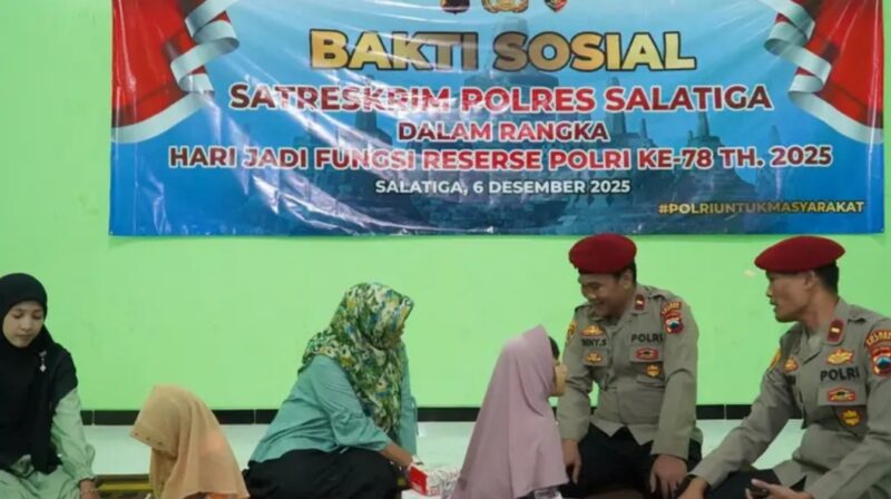 SALATIGA | jejakkasusindonesianews.com — Memperingati Hari Jadi Fungsi Reserse Polri ke-78, Satuan Reserse Kriminal (Satreskrim) Polres Salatiga kembali menunjukkan komitmen sosialnya dengan menggelar bakti sosial di Panti Asuhan Masithoh, Sidorejo Kidul, Tingkir, Kota Salatiga, Minggu (6/12/2025).