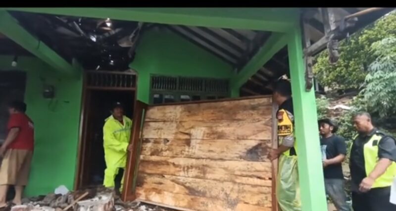 Rumah milik Mbah Jas’an hancur tertimpa material longsoran tanah dan batu. Warga sekitar sempat dikejutkan oleh suara gemuruh sebelum talud ambrol dan menimpa bangunan rumah.