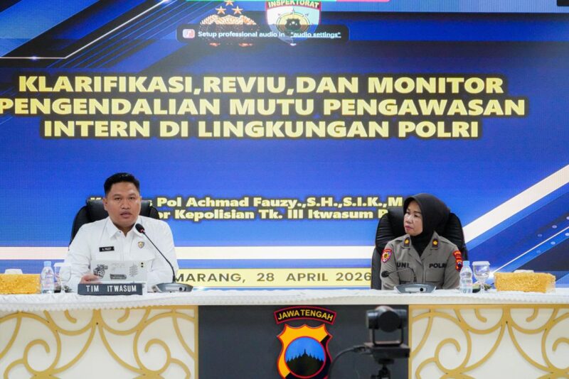 SEMARANG | JEJAKKASUSINDONESIANEWS.COM- Pengawasan internal di tubuh Polri kembali diperketat. Tim Inspektorat Pengawasan Umum (Itwasum) Polri turun langsung ke Polda Jawa Tengah, Selasa (28/4/2026), untuk melakukan klarifikasi, reviu, dan monitoring pengendalian mutu pengawasan internal Tahun Anggaran 2025.