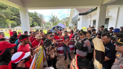 Aksi yang berlangsung tertib namun penuh semangat itu merupakan bentuk protes terhadap dugaan pelanggaran oleh perusahaan perkebunan sawit, mulai dari pengabaian kewajiban kemitraan hingga kriminalisasi terhadap masyarakat adat.