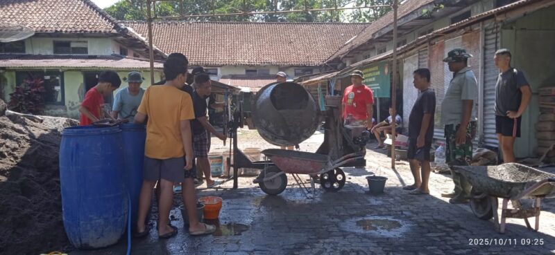 SALATIGA |JEJAKKASUSINDONESIANEWS.COM- Semangat gotong royong kembali hidup di Asrama Garnisun RT 05/RW 07, Kelurahan Kalicacing, Kota Salatiga. Warga setempat bergotong royong memperbaiki jalan lingkungan yang rusak, Sabtu (11/10/2025).